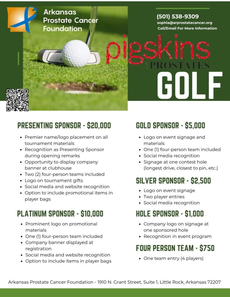 All funds raised will directly benefit APCF’s initiatives, including free awareness and educational programs, prostate cancer screenings, and patient assistance. Every dollar raised will stay in Arkansas, making a lasting impact on the local community.